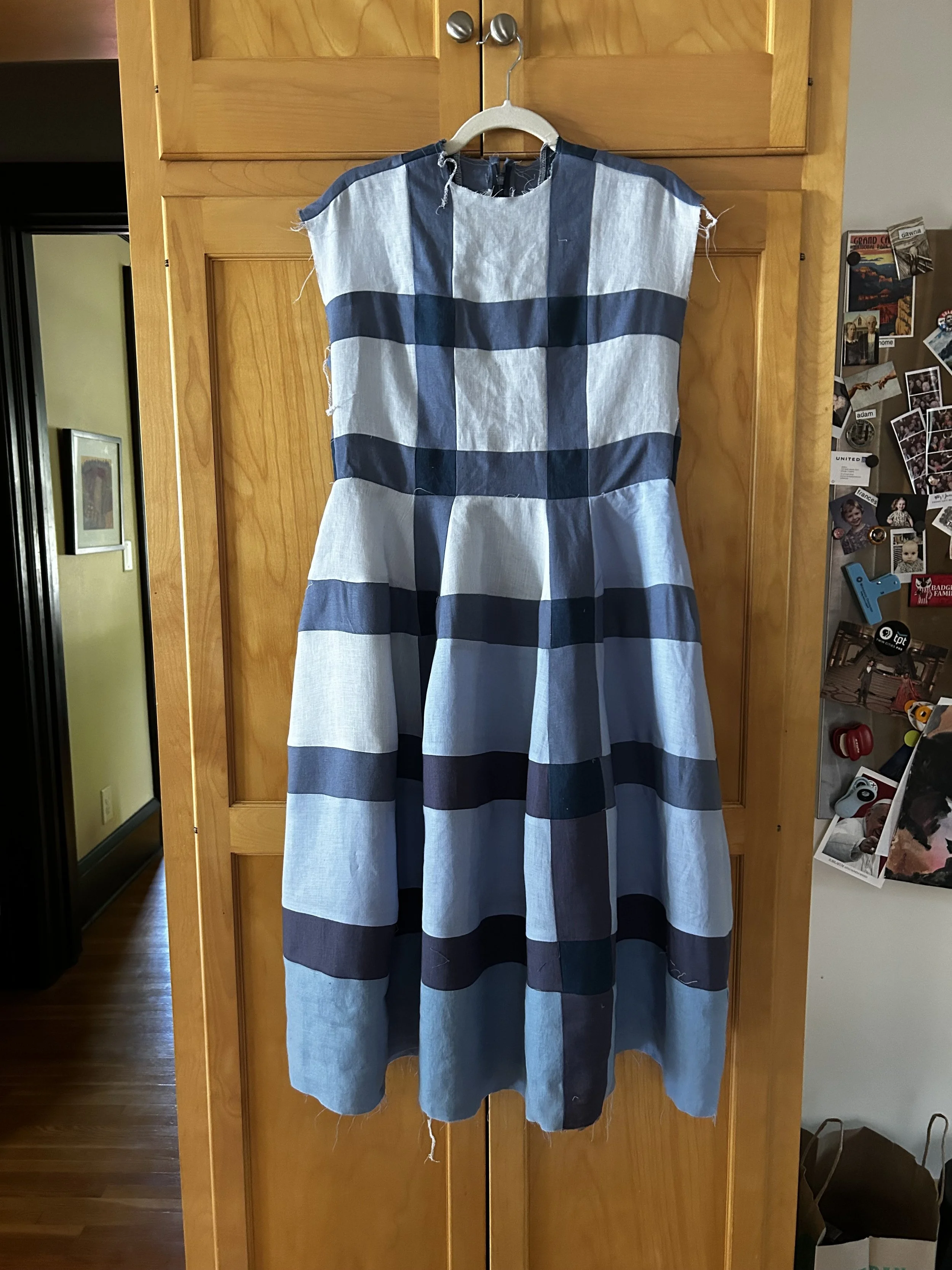 Once I had the pieces sorted I started sewing following the instructionsand things really picked up. I surprisingly enjoyed putting the pieces together like a jigsaw, and the clever drafting meant the pieces started creating a three dimensional shape. It was both meditative to sew all those pieces, and thrilling to see them coming together in form. I can get caught up in a project, but I thought I would have to push myself on this one given all the pieces. Surprisingly, I went all in- completely obsessed. I finished the dress much sooner than I anticipated.